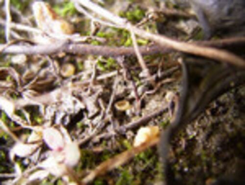 あらためて、イヌノフグリの種の写真です。中央の薄茶色の粒です。前回まちがってフラサバソウの種子の写真を出してしまいましたが、その写真とは別の場所で7月3日に撮影したものです。 大きさは最大長で約1.5ミリです。フラサバソウの種子は表面がつるつる…