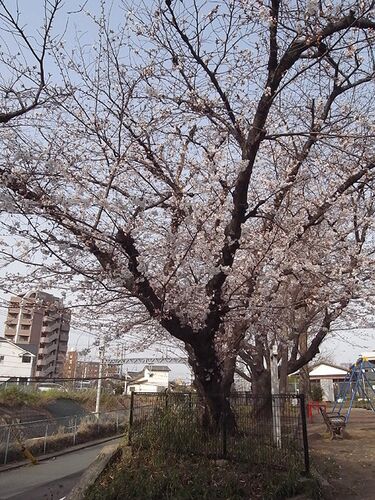 2013年3月16日 麦野公園(福岡市博多区) 今日は朝と夕方に行ってみました。 西鉄雑餉隈駅側のソメイヨシノ、七、八分咲きのように見えました。 夕方見てみると、線路側の3本のソメイヨシノのうち、天神側の木が、花が10輪ほど開いていました。 これで、線…