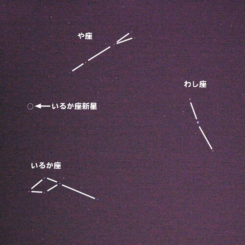 久しぶりにすっきりした晴れの夜空になりました。 いるか座新星をまた写してみました。 2013年8月26日 20:36 福岡市 Ricoh GX200 72mm f4.4 8秒 ISO200 ただしサイズ変更・レベル変更済 (前回の写真画像と設定・処理が異なります。明るさ等を直接比較できま…