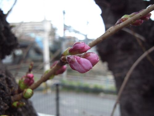 2014年3月12日 麦野公園(福岡市博多区三筑)のソメイヨシノ、つぼみがふくらみつつある西鉄雑餉隈駅側の木、この数日ふくらむペースがゆるやかだったのですが、今日、1輪だけ咲いているのを見つけました。 昼の写真ですが、そのあと曇って少し気温が下がっ…